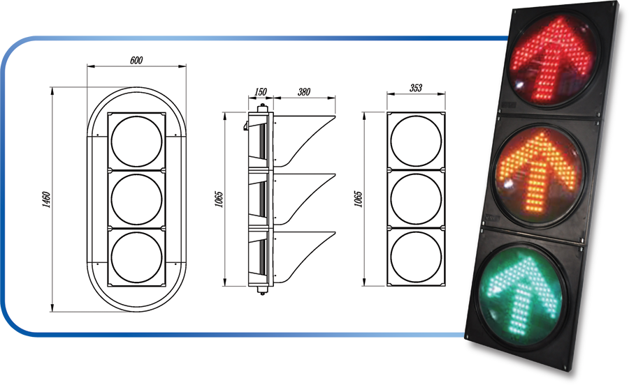 鼎光 FX300-3-DA LED方向指示信號(hào)燈采用LED發(fā)光方式,符合國(guó)標(biāo)《道路交通信號(hào)燈》(GB14887-2011)的要求,并且 通過(guò)了公安部交通安全產(chǎn)品質(zhì)量監(jiān)督檢測(cè)中心的檢測(cè)。交叉口信號(hào)燈按車道功能設(shè)置,每組信號(hào)燈為具有可顯示紅、黃、綠三 色箭頭燈和全屏燈功能的燈具,安裝附于車道下游的懸臂桿或立柱式燈桿上,燈桿基礎(chǔ)必須安裝地線,接地電阻小于或等于10 歐姆。